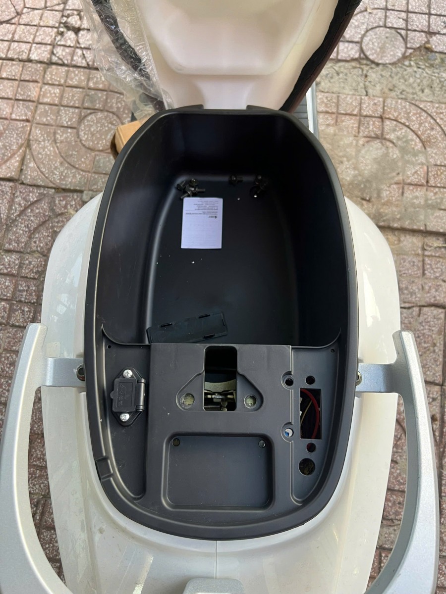 Khoang cốp dưới yên đủ rộng để chứa mũ bảo hiểm nửa đầu cùng một số vật dụng cá nhân như áo mưa, ví hoặc sách vở mỏng. Với nhu cầu đi học hằng ngày, dung tích này được xem là vừa vặn.