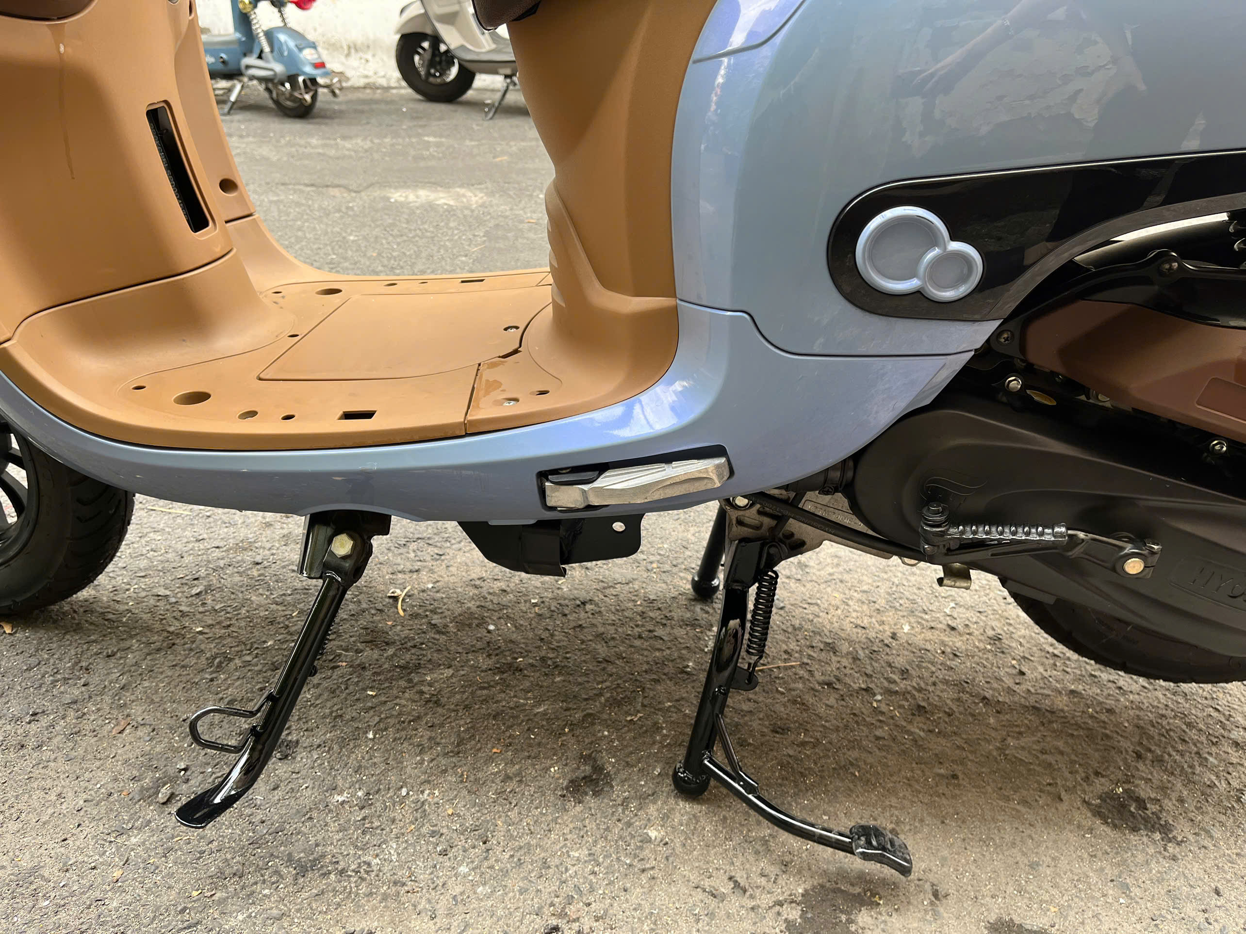 Phanh trước dạng cơ kết hợp dầu thủy lực mang lại cảm giác bóp phanh đều tay. Phanh sau tang trống hỗ trợ kiểm soát tốc độ ổn định trong các tình huống giảm tốc. Cách bố trí này phù hợp với người mới lái.