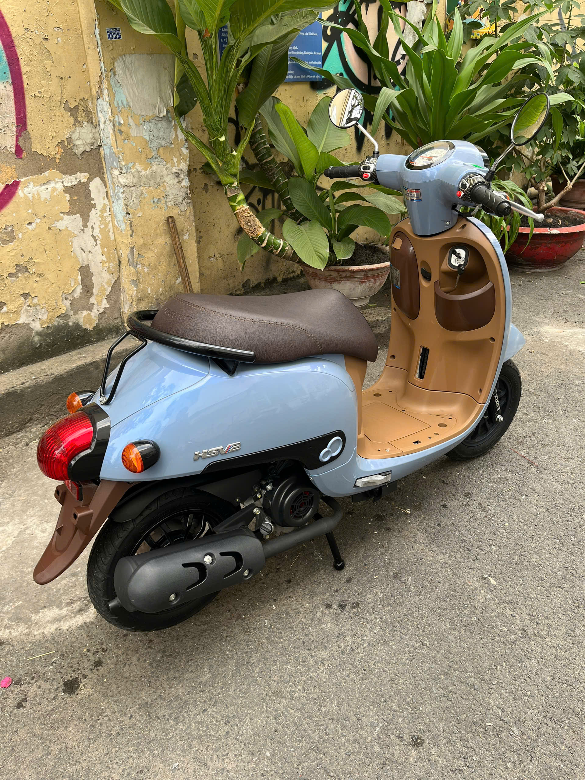 Với trọng lượng xe khoảng 79 kg, Giorno HSV2 mang lại cảm giác đầm khi vận hành nhưng không gây nặng nề khi dắt xe. Trọng lượng này giúp xe giữ ổn định khi vào cua hoặc di chuyển ở tốc độ trung bình. Người lái dễ cảm nhận sự chắc chắn của khung xe.